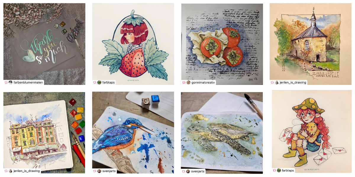 In this gallery you will find pictures that were created with VHaquarell handmade watercolor paints. Experience the magic of 100% handmade watercolors conjured onto paper!