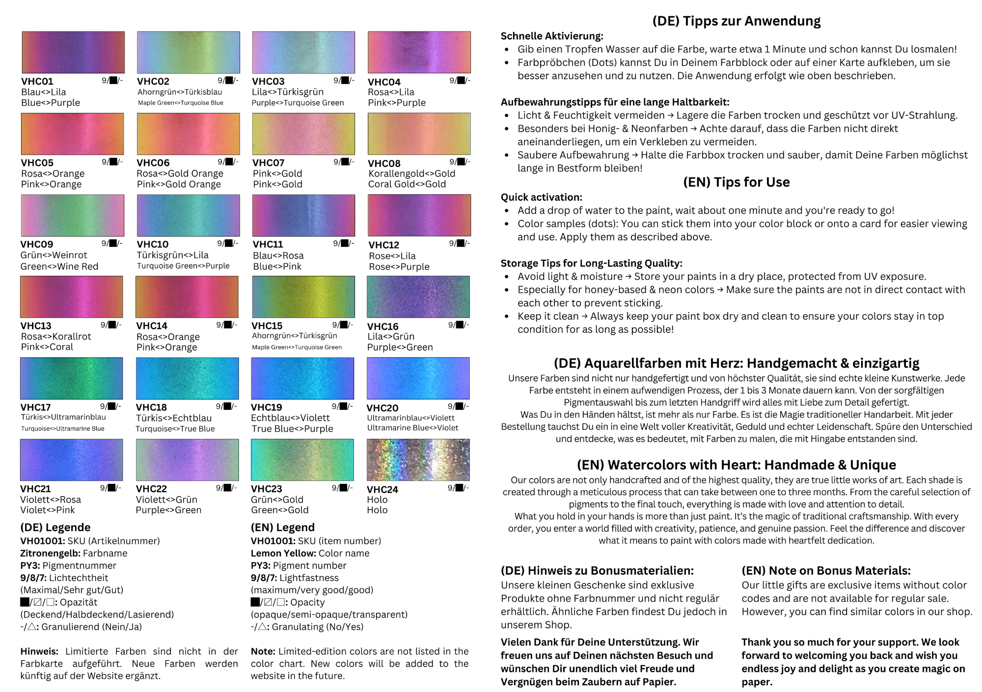 Discover the magic of handmade watercolors – with the VHaquarell color chart