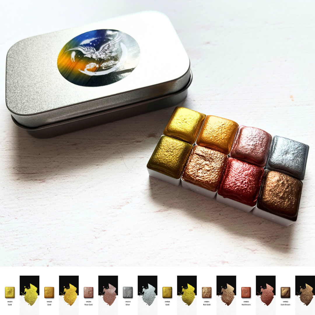 ✨ Das glänzende VHaquarell Metallic–Bundle mit 16 handgemachten Aquarellfarben!